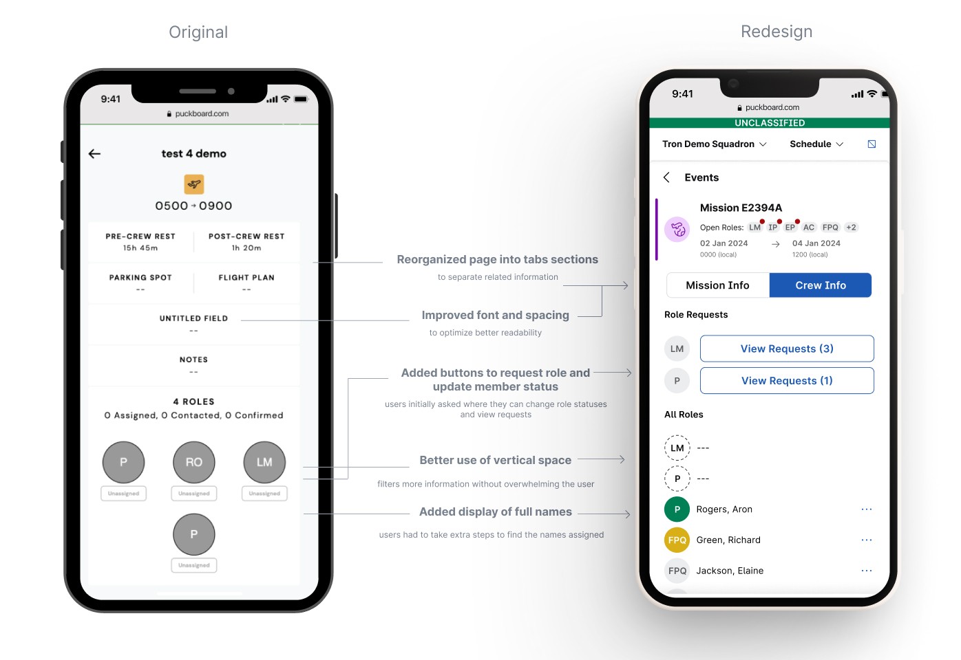 Aircrew members are always on the go, so optimizing for a familiar, easy-to-use mobile version was crucial. This specific project aimed to deliver a cohesive and user-friendly experience across the platform, ensuring all users could efficiently navigate and leverage the scheduling features.